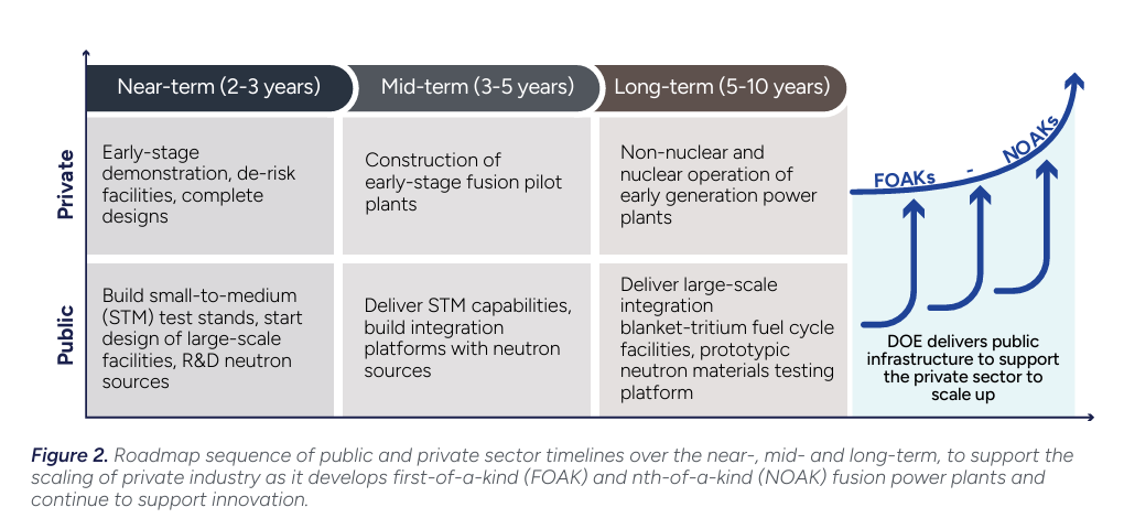 Timeline Synchronized with Industry - The roadmap operates on three time horizons: near-term (2-3 years), mid-term (3-5 years), and long-term (5-10 years). This is designed to deliver capabilities just ahead of when private companies will need them, as they progress from demonstration platforms in the late 2020s to commercial power plants in the 2030s.