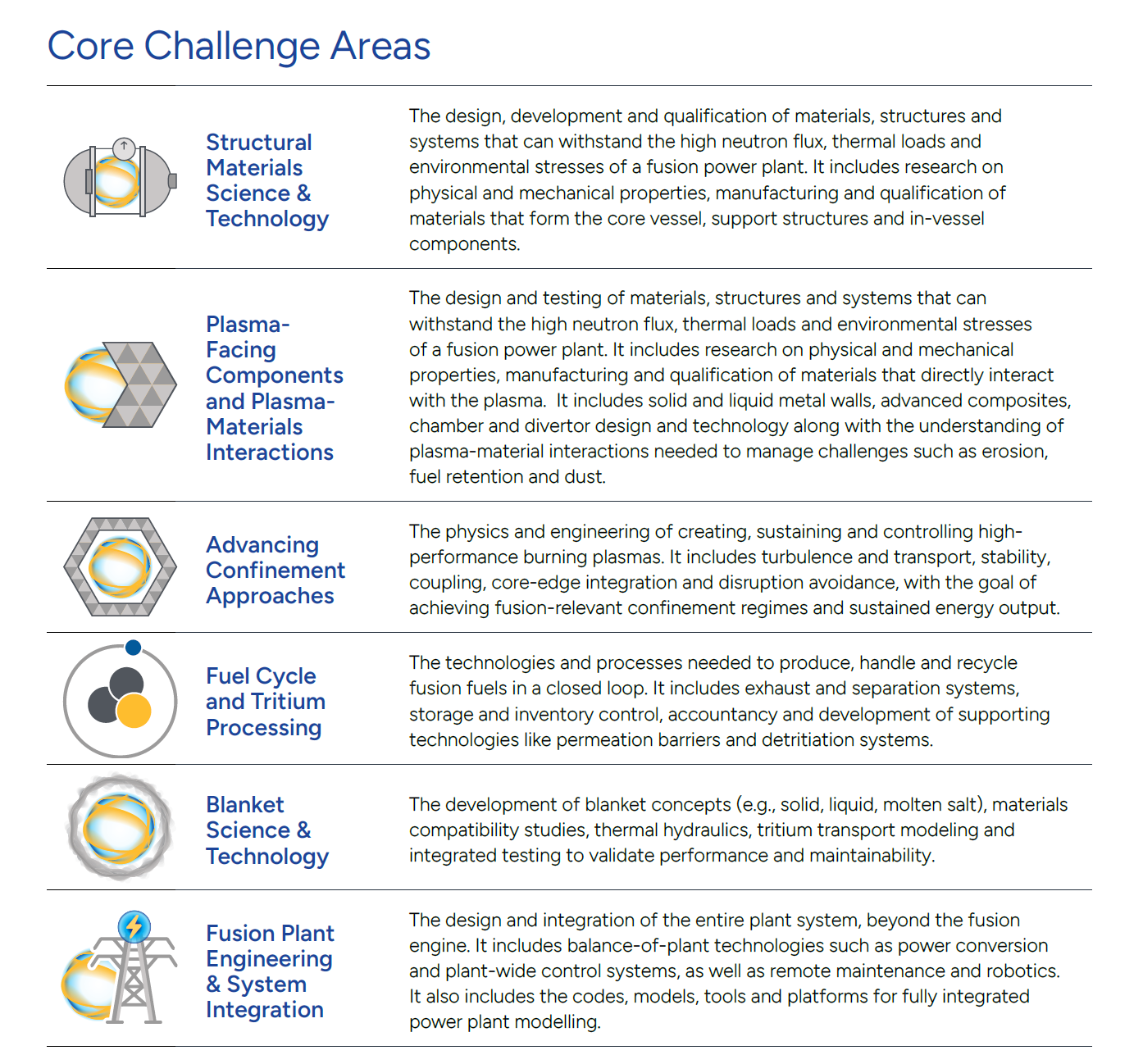 DOE Fusion Science & Technology Roadmap, Figure 6. The core Challenge Areas