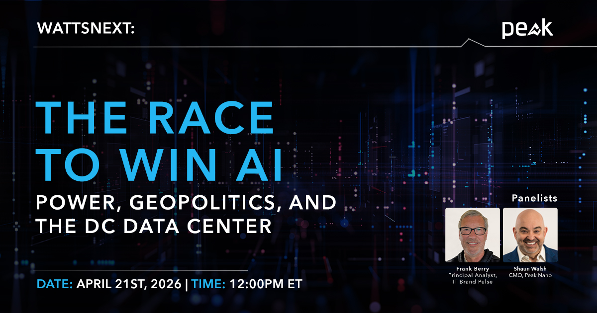 Global power and winning the AI race are directly linked. Global electricity demand is expected to double over the next 10 years, driven largely by the explosive growth of AI and data centers. The infrastructure decisions being made today will shape the next decade of energy, technology, and investment. In this webcast, Frank Berry of IT Brand Pulse and Shaun Walsh of Peak Nano break down the forces reshaping how we build, power, and scale for what's ahead.